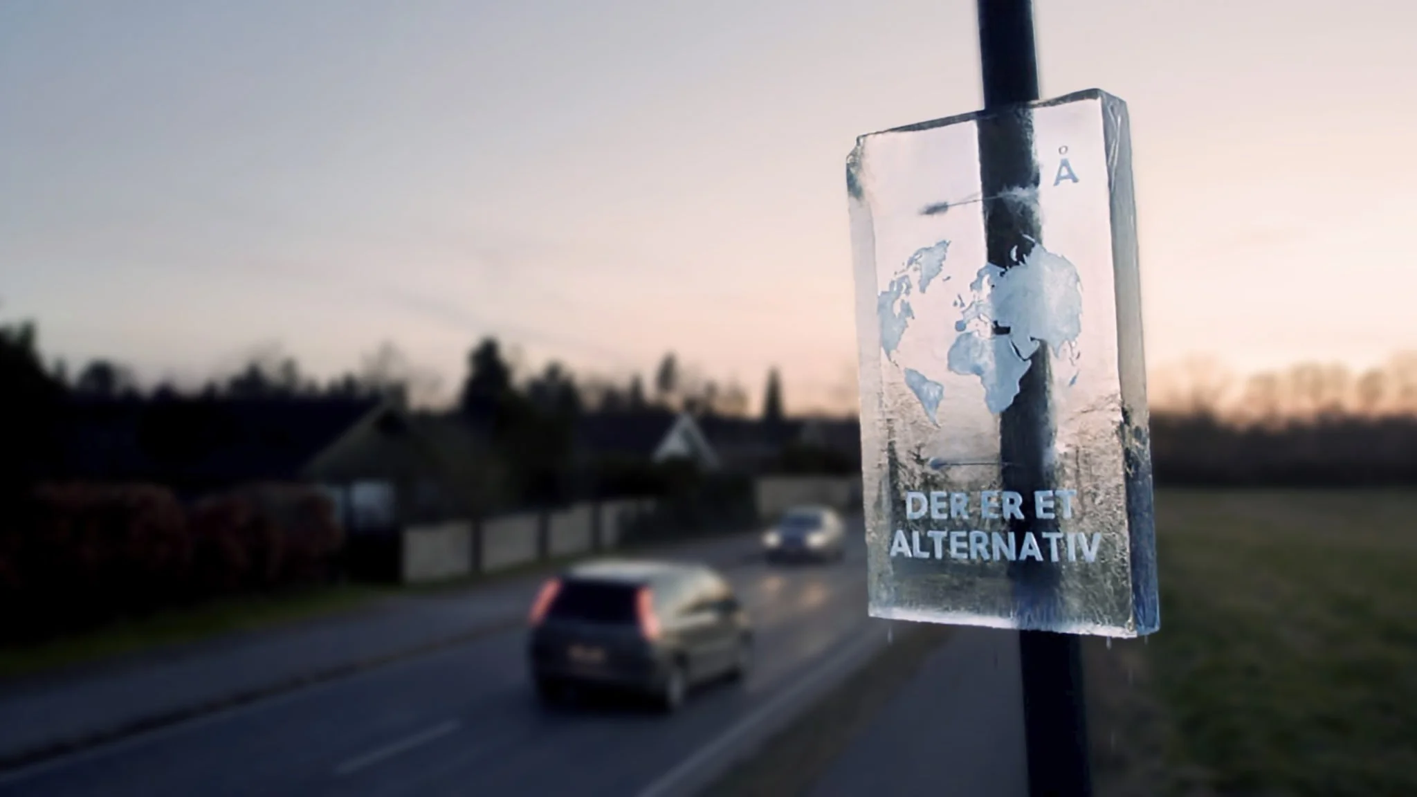 And therefore we created an alternative election poster made of only ice. To show the voters that there was a sense of urgency on the topic of climate since the ice is actually melting. And creating an election poster of ice would also leave as little CO2 mark as possible.